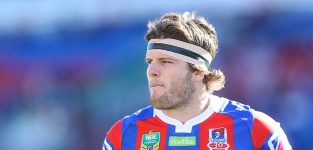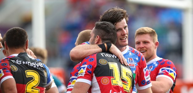In the 12th minute the 24-year-old was gifted with a perfect pass from new teammate Mitchell Pearce for the Knights' first of the match.