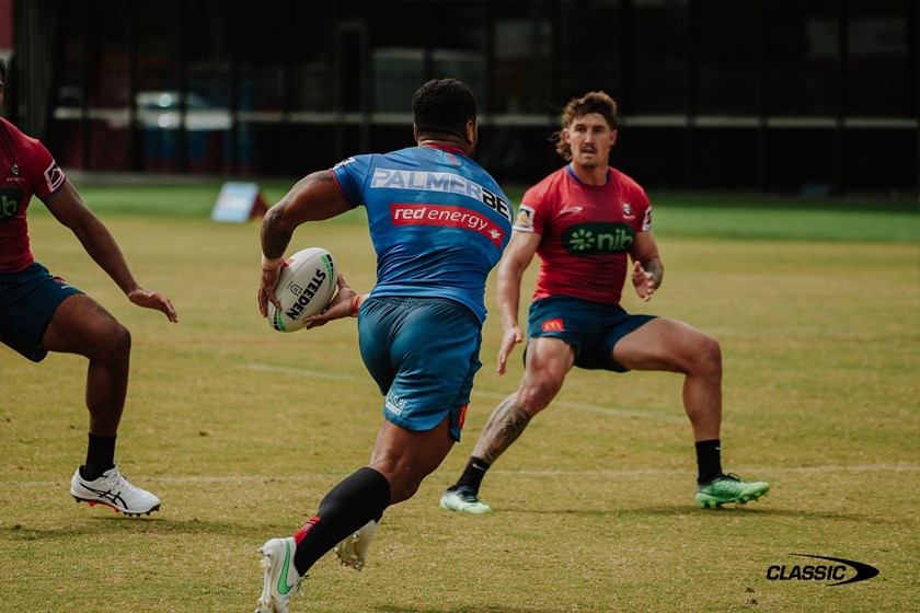 Prop for Knights is number 8 Daniel SaifitiProp for Warriors is number 8 Addin Fonua-Blake